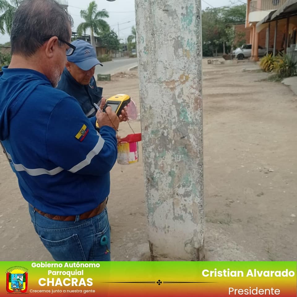 Se notificó a CNEL sobre los postes en mal estado que existen en la parroquia, por lo que se realizó la inspección correspondiente para identificar aquellos que se encuentran en mal estado y reemplazarlos posteriormente, tanto en Chacras como en Balsalito.